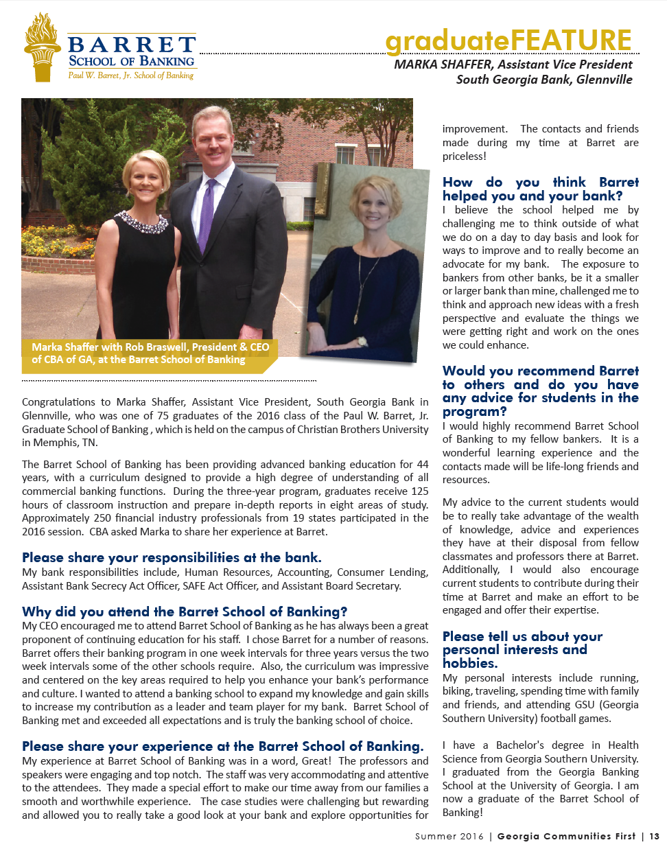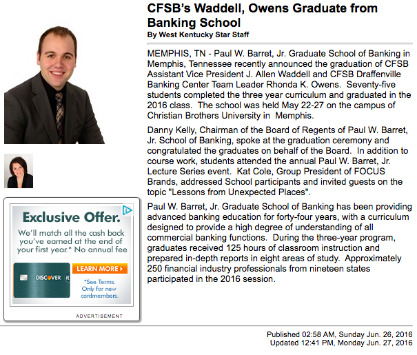 Griffin attended Mississippi State University, graduating with a bachelor’s degree in business administration. He also graduated with honors from the Paul W Barret, Jr. Graduate School of Banking.